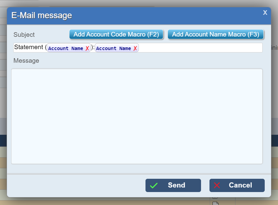 The email Subject can include two macros for account code and name.