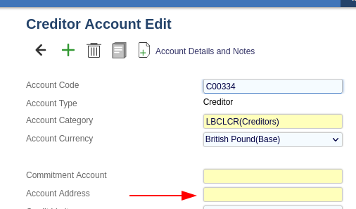 Creditor (payee, beneficiary) - a Supplier record selected as “Address” in Creditor Account